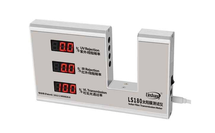 LS180太陽膜測(cè)試儀的測(cè)試原理是采用紫外光源,可見光源和紅外光源照射被測(cè)透明物質(zhì),感應(yīng)器分別探測(cè)三種光源的入射光強(qiáng)和透過被測(cè)透明物質(zhì)后的光強(qiáng),透過光強(qiáng)與入射光強(qiáng)的比值即為透過率,用百分?jǐn)?shù)表示。大多數(shù)的太陽膜,可見光標(biāo)注透過率指標(biāo),紅外線和紫外線標(biāo)注阻隔率指標(biāo),阻隔率=100%-透過率。