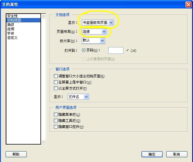 ?設(shè)置:“文件—>文檔屬性”,顯示選擇“書(shū)簽面板和頁(yè)面“,頁(yè)面布局選擇“連續(xù)”。